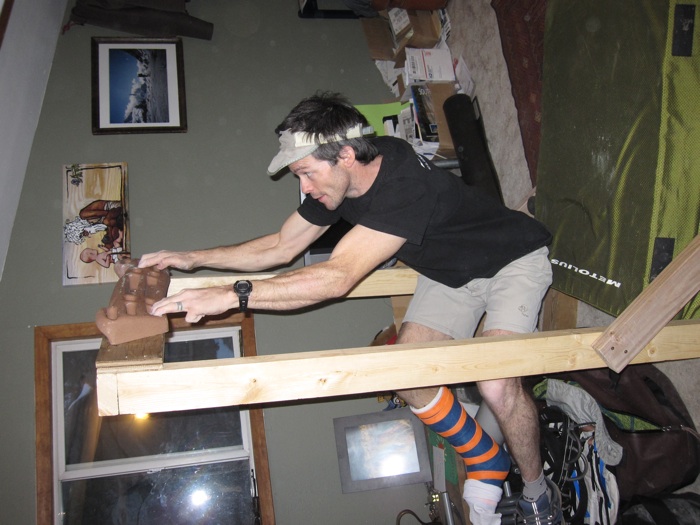 Ol' Jim Turner climbing in his favorite 3L shell in Silverton. Good thing he also has a rope.