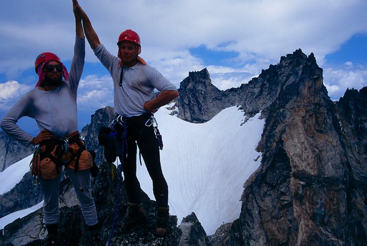 Joe (L) and Mark Westman -- Mark: "Early Morning Spire, summer of 1996. The days when filthy white long johns and tights were cool. To us."