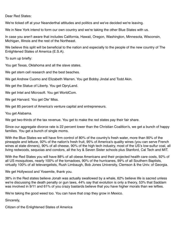 2. I’m glad you’re sharing your thoughts, even if I couldn’t agree with them less. Trying to understand both sides of an argument is important in making a decision on something as important as voting for a president. It sounds like you’ve spent quite a bit of time formulating your argument. I doubt you’ve spent even a portion of that time trying to understand the other side of the argument. Makes for level-headed decision making, I’d say. . . as does reading The New Yorker.